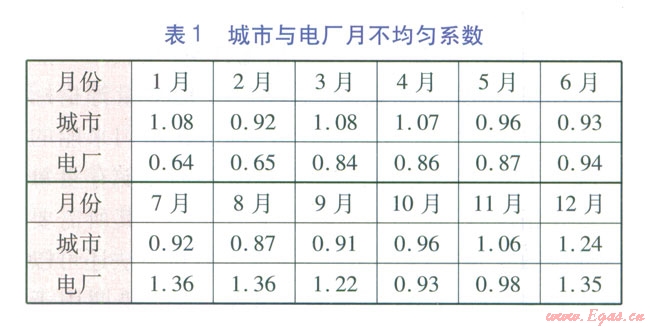 該地區(qū)天然氣主要用戶包括燃?xì)怆姀S和城市用戶,其中:城市用戶包括居民用戶、商業(yè)用戶、一般工業(yè)用戶及交通用戶,其天然氣需求為36×108m3a;電廠用戶包括天然氣調(diào)峰發(fā)電廠及天然氣熱電廠,其天然氣需求為78×108m3a。城市用戶和電廠用戶天然氣總需求為114×108m3a,其月不均勻系數(shù)見表1.