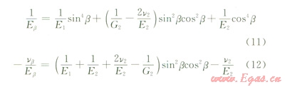 由于在β=45°情況下,v2E1=vlE2,可得與z軸為任意角度β方向的彈性模量Eβ和泊松比vβ