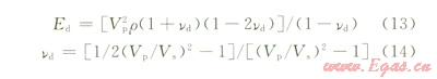 式中Ed為巖石動態(tài)彈性模量,MPa;vd為巖石動態(tài)泊松比;Vp為縱波速度,ms;Vs為橫波速度,ms;ρ為巖石密度,gcm3。