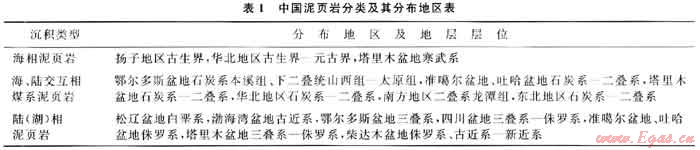 中國的暗色泥頁巖主要包括海相、海陸交互相以及陸(湖)相泥頁巖和泥巖,重點指含油氣盆地中的優(yōu)質(zhì)泥質(zhì)烴源巖。圖1和表1顯示了中國富有機質(zhì)泥頁巖的類型、層系和分布特點。中國南方揚子地塊海相泥頁巖分布廣泛并夾硅質(zhì)頁巖(如揚子地區(qū)牛蹄塘組底部頁巖)、暗色泥頁巖、鈣質(zhì)泥頁巖和砂質(zhì)泥頁巖;海陸交互相泥頁巖多為砂質(zhì)泥頁巖和碳質(zhì)泥頁巖;陸(湖)相泥頁巖頁理發(fā)育,其中渤海灣盆地、柴達(dá)木盆地新生界湖相泥頁巖鈣質(zhì)含量較高,鄂爾多斯盆地中生界湖相泥頁巖石英含量較高[1~2]。