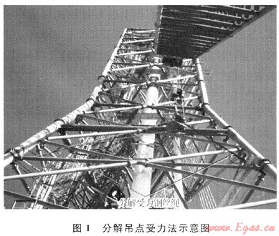5) 吊車(chē)指揮人員在放空火炬將要呈垂直位置時(shí)重點(diǎn)監(jiān)控吊臂頂部滑車(chē)與塔架桿件的距離,防止與桿件相碰。