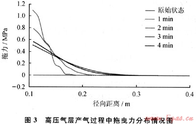 圖4給出了高壓氣體高速流動對產(chǎn)氣層井壁穩(wěn)定性的影響關系。