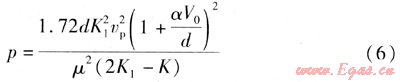 將式(2)~(5)代入式(1),整理得到噴嘴前供氣壓力的計算公式,見式(6)。