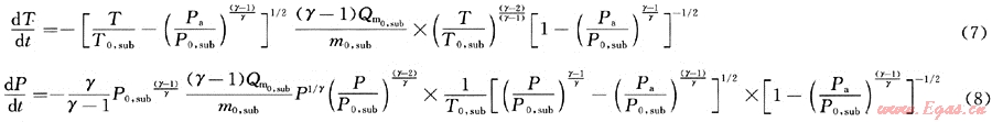 據(jù)臨界壓力判別標準,并結(jié)合臨界流、亞臨界流變孔徑孔口泄漏下任意時刻的P、T、ρ、Qm、m的計算關(guān)系式[1],運用格林函數(shù)可得出其溫度和壓力經(jīng)驗解析公式如下: