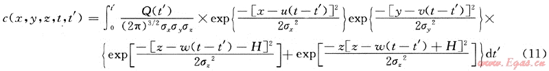 當泄漏為地面點源泄漏時,則令上述各式中的H=0,所得各式就為地面源泄漏模型。