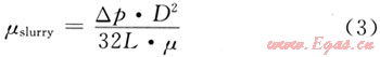 假設(shè)在本實(shí)驗(yàn)的流動(dòng)中,天然氣水合物顆粒是均勻分布的,并且流動(dòng)處于層流區(qū)域,通過觀察實(shí)驗(yàn)過程中流量和所測得的壓降,就可以利用圓管層流里的管道壁面剪切力與壓降的關(guān)系求出天然氣水合物漿液的表觀黏度,為: