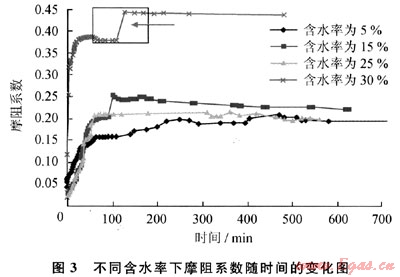 為了使天然氣水合物顆??梢愿玫胤稚⒃谔烊粴馑衔餄{液中并隨之一起流動(dòng),防止其聚集阻塞管道,分別向4種不同含水率的水一柴油乳狀液中加入了劑量不等的阻聚劑,由于流動(dòng)屬于層流范圍。因此運(yùn)用達(dá)西公式可以計(jì)算出每一時(shí)刻的摩阻,為: