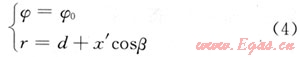 如圖2,設(shè),裂紋長為2a,O′為裂紋的中點,裂紋的傾角為β,裂紋相對最大水平地應(yīng)力的方位角為φ0。求出裂紋面上每一點的正應(yīng)力和剪應(yīng)力,即可得到應(yīng)力強度因子;求出裂紋面上每點的應(yīng)力狀態(tài),即可得到剪應(yīng)力和正應(yīng)力;只需求出每點的r和φ,然后代入定向井井周應(yīng)力計算公式即可得到應(yīng)力狀態(tài)。根據(jù)假設(shè)可知: