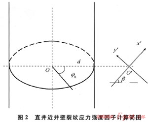 假設(shè):近井壁裂紋擴展的開始是井壁失穩(wěn)的臨界點。即如果存在井壁裂紋的擴展條件,就認為井壁會發(fā)生失穩(wěn)坍塌現(xiàn)象,并且近井壁裂紋擴展的開始,就是井壁失穩(wěn)的開始。根據(jù)此假設(shè),就可以把定量確定裂紋擴展的判據(jù)應(yīng)用于確定井壁失穩(wěn)。
