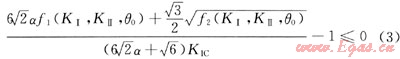 國內(nèi)外學者對裂紋的失穩(wěn)擴展研究取得了豐碩的成果,建立了相應(yīng)的斷裂準則[6~7]通過適用性分析,筆者選用了基于巖石破壞準則的巖石斷裂判據(jù)[6]。筆者利用D-P破壞準則,并結(jié)合裂紋尖端的應(yīng)力場、應(yīng)力強度因子和斷裂韌度提出了該判據(jù),具體推導過程見本文參考文獻[6]。