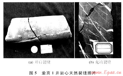 對于新完鉆的頁巖氣井,要獲得工業(yè)性氣流,必須采用水力壓裂改善儲層的滲透能力,在進行壓裂作業(yè)時,應該結合完井方式,儲層特點選擇合適的壓裂工藝。根據(jù)國外頁巖氣開發(fā)的經(jīng)驗,深度較淺(低于1500m)或壓力較低的頁巖儲層一般使用氮氣泡沫壓裂,中等深度(1500~3000m)的儲層則適宜使用清水壓裂開采。氮氣泡沫壓裂對頁巖儲層無傷害,成本低,收益快,是我國頁巖氣勘探開發(fā)初期淺井開發(fā)比較合適的壓裂方式,美國頁巖氣開發(fā)早期曾使用氮氣泡沫壓裂,在當時取得了良好的效果,現(xiàn)在在某些特殊儲層壓裂仍然使用[23~24]。我國頁巖氣儲層除少數(shù)地區(qū)埋深較淺外,大多數(shù)埋深大于1500m,對于埋深小于1500m的有利儲層或開發(fā)前期的勘探淺井,可以嘗試使用氮氣泡沫壓裂;對于埋深在1500~3000m的有利儲層,清水壓裂是最適宜的壓裂方式。對于開采長度(厚度)大的頁巖氣井,可以結合儲層的特點,嘗試使用清水壓裂與多級壓裂相結合的水力壓裂技術;對于埋深在3000m以下的儲層,考慮到開采成本和技術的可行性,可暫時不用開發(fā)。2009年完鉆的渝頁1井是我國第一口勘探淺井,通過對渝頁1井的巖心分析,我國上揚子地區(qū)龍馬溪組頁巖天然裂縫系統(tǒng)較發(fā)育,蒙脫石含量少,水敏性弱,不同深度含氣性各異,因此可采用清水分段壓裂(圖5)。