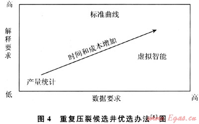 李新景等通過對川南、川西南下寒武統(tǒng)筇竹寺組威5、威18等井及下志留統(tǒng)龍馬溪組陽63、太15、陽深1、陽深2等老井的資料復查,認為在這些老井中存出現(xiàn)頁巖氣顯示。陽63井3505~3518m井段黑色碳質(zhì)頁巖段射孔后,經(jīng)土酸酸化處理,獲得天然氣3500m3/d[20]。對于像這些在鉆井中存在良好的頁巖氣顯示,特別是經(jīng)過初次酸化壓裂改造后在頁巖層段獲得較好的天然氣產(chǎn)出的老井,在現(xiàn)階段,采用現(xiàn)代的水力壓裂技術,對非頁巖層封堵后重新壓裂頁巖層段,改善儲層的滲透性能,是獲得頁巖氣產(chǎn)量突破的最佳辦法。重復壓裂候選井選擇方法有產(chǎn)量統(tǒng)計法、模式識別技術(尤其是神經(jīng)網(wǎng)絡、虛擬智能和模糊邏輯)以及產(chǎn)量標準曲線法。在頁巖儲層中,虛擬智能模擬得出的結論最有效,其次是標準曲線法,單獨使用生產(chǎn)數(shù)據(jù)的方法效果最差[5]。在選擇候選井時,應該綜合3種方法優(yōu)選的結果選擇最合適的井進行壓裂(圖4)。