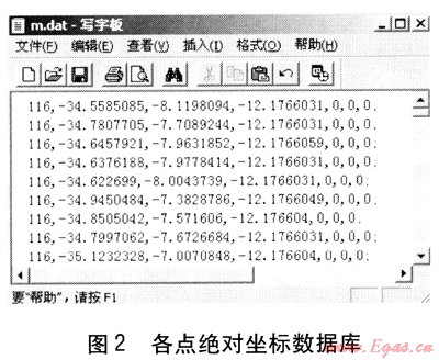 獲取點(diǎn)云數(shù)據(jù)后,對數(shù)據(jù)模型進(jìn)行重構(gòu),包括點(diǎn)云處理和坐標(biāo)系對齊等。為進(jìn)一步進(jìn)行數(shù)據(jù)處理,將測量所得的各點(diǎn)絕對坐標(biāo)分段導(dǎo)入數(shù)據(jù)庫,數(shù)據(jù)庫格式便于MATLAB軟件調(diào)用即可,各點(diǎn)絕對坐標(biāo)數(shù)據(jù)庫見圖2。