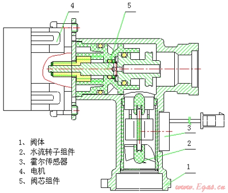 水量伺服閥是我公司根據(jù)國(guó)內(nèi)外市場(chǎng)發(fā)展的趨勢(shì),專門為實(shí)現(xiàn)燃?xì)饩咧悄芑刂贫兄崎_發(fā)的一種新型水比例調(diào)節(jié)閥并申請(qǐng)了實(shí)用專利。本專利產(chǎn)品包括閥體、水流轉(zhuǎn)子組件、霍爾傳感器、閥芯組件和電機(jī)等組成。其中,水流轉(zhuǎn)子組件縱向裝在閥體的進(jìn)水通道內(nèi),霍爾傳感器設(shè)在閥體的外部且與水流轉(zhuǎn)子組件的磁塊位置相對(duì)應(yīng),設(shè)在閥體內(nèi)的閥芯組件與設(shè)在閥體外部的電機(jī)連接,通過(guò)改變出水口間隙的大小實(shí)現(xiàn)水流量的調(diào)節(jié),可靠實(shí)現(xiàn)由于管網(wǎng)壓力波動(dòng)時(shí)保證水流量恒定。特別是燃?xì)饩咭胧须姾笈c相應(yīng)的燃?xì)饪刂票壤y聯(lián)合使用實(shí)現(xiàn)水氣聯(lián)調(diào),能可靠地對(duì)所用燃?xì)狻⑺髁窟M(jìn)行自動(dòng)調(diào)節(jié),實(shí)現(xiàn)燃?xì)饩呖焖僮詣?dòng)恒溫、定時(shí)開關(guān)機(jī)(手機(jī)信號(hào)無(wú)線遙控)、火力大小調(diào)節(jié)等智能化控制,節(jié)約能源,增加熱效能,大大地提高了燃?xì)饩叩男阅芎蜋n次。