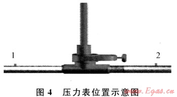 具體試驗(yàn)步驟:選擇空曠場(chǎng)地,搭建試驗(yàn)平臺(tái);剝防腐層,除去管線表面油污、底漆;測(cè)量管線橢圓度,保證封堵點(diǎn)位置橢圓度不超過(guò)1%;測(cè)量管線壁厚,盡量避開(kāi)嚴(yán)重腐蝕區(qū)域;選擇合適點(diǎn),焊接封堵三通、注氮短節(jié)、平衡短節(jié)以及管線封頭;對(duì)焊道進(jìn)行滲透探傷檢查;安裝夾板閥、球閥,壓力表位置安裝示意圖見(jiàn)圖4,從口2注入氮?dú)猓瑝毫?.0MPa;安裝1200H開(kāi)孔機(jī)和T101型開(kāi)孔機(jī),開(kāi)DN600mm封堵孔和2號(hào)平衡孔;調(diào)試、安裝封堵器,進(jìn)行封堵操作,封堵操作時(shí)先壓力平衡后方可進(jìn)行下一步的操作;經(jīng)測(cè)量和計(jì)算,封堵尺寸下到位后,打開(kāi)2號(hào)球閥放空氣體;使用火焰切割設(shè)備,切開(kāi)2號(hào)球閥一側(cè)封頭,向管道內(nèi)安裝氣囊并給氣囊充氣;觀察1號(hào)位置處短節(jié)上的壓力表看壓力是否變化,用肥皂水噴氣囊貼管內(nèi)壁處,若壓力表無(wú)變化,氣囊貼管壁處無(wú)氣泡則封堵成功,否則封堵視為不成功,此時(shí)應(yīng)分析封堵不成功的原因,并有針對(duì)性地提出解決問(wèn)題的措施,直到封堵成功為止。封堵試驗(yàn)完成后,對(duì)1號(hào)位置處進(jìn)行泄壓;拆卸封堵設(shè)備和焊接在試驗(yàn)管道上的三通等機(jī)具、器材,并將它們擺放就位。