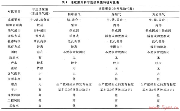 連續(xù)油氣藏一詞最早是USGS(美國地質(zhì)調(diào)查局)1995年進行油氣資源評價時用來區(qū)別與常規(guī)油氣藏不同的一種新型氣藏的名稱。對這類油氣藏[括煤層氣藏、頁巖油氣藏、根緣油氣藏(深盆油氣藏)]需要采用專門的評價方法[10]。筆者認為,這類連續(xù)油氣藏不但在資源評價方法上與常規(guī)油氣藏不同,而且在地質(zhì)特征上也與常規(guī)油氣藏有著本質(zhì)的區(qū)別。
