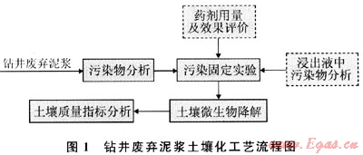 國外對于鉆井廢棄泥漿的處理主要采用固液分離后再處理的方案。目前,國外主要開發(fā)固結(jié)性好,又具有一定肥效的固化劑,使固化后的泥漿污染物不易流失,將固化產(chǎn)物分散到土壤中,利用土壤中微生物降解泥漿中的污染物后可進(jìn)行耕植。國內(nèi)對廢棄鉆井液的處理研究較多,主要有固化法、化學(xué)氧化法、固液分離及生物處理法等[1~5],固化是目前國內(nèi)處理廢棄泥漿的主要方法,固化處理一般是向鉆井廢棄泥漿加入固化劑,使鉆井廢棄泥漿轉(zhuǎn)化成固相,然后填埋,從而減輕對環(huán)境的污染和危害,但也存在一定的環(huán)境污染隱患和政策風(fēng)險。本研究根據(jù)鉆井廢棄泥漿的特點(diǎn),開發(fā)出相應(yīng)的廢棄泥漿污染物固定劑,對泥漿中的污染物進(jìn)行固定,然后與選擇的土壤混合,利用土壤中的微生物降解泥漿中的污染物后,將固相成分轉(zhuǎn)化為土壤資源,從而有效消除廢棄鉆井泥漿對環(huán)境的污染,減少固化占用的土地資源,為解決廢棄泥漿的污染尋找到了新的途徑。