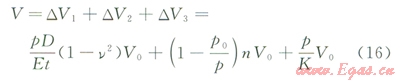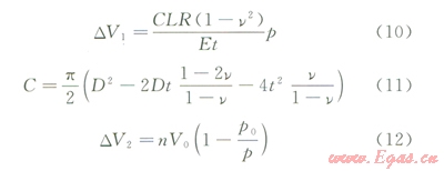 實(shí)踐中,對于式(10),由于徑向?yàn)楣艿辣诤穹较?,對于大口徑薄壁管,擘厚變化引起的管道體積變化較小,以規(guī)格為l219×22mm規(guī)格的管道為例,經(jīng)測算,僅為DVl5%,若考慮空氣、水的壓縮性,該比例還將大大降低。因此,本文將該壁厚變化引起的體積變化忽略,得到DVl表達(dá)式為: