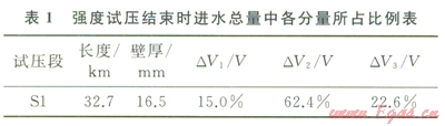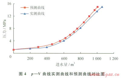 同時,分析預(yù)測曲線中V的組成,其中DV1DV2DV3各自所占的比例見表l,由水壓縮性計(jì)算而得的DV3,其值超過DV1,是試壓進(jìn)水量的一個重要因素,不可在計(jì)算中忽略。