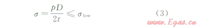 式中P為管道試壓壓力或運(yùn)行壓力,MPa;D為管道外徑,mt為管道壁厚,m;s為內(nèi)壓產(chǎn)生的環(huán)向應(yīng)力,應(yīng)不超過管道的屈服強(qiáng)度,MPa