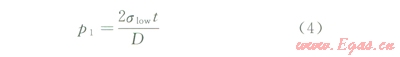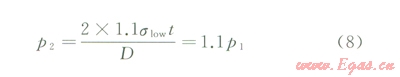 同樣,根據(jù)99%的可靠度,當(dāng)試壓的等效應(yīng)力達(dá)到slow時,實(shí)際鋼管可承受的環(huán)向應(yīng)力為1.125slow,小數(shù)圓整后為1.1slow,由此對應(yīng)的強(qiáng)度試壓壓力P2計(jì)算公式為: