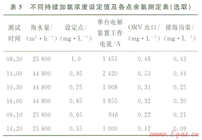2)海水余氯濃度處于設備長期運行所能承受的范圍內。