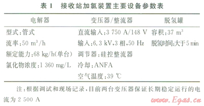 接收站目前設有兩臺加氯裝置,主要設備參數(shù)見表l。