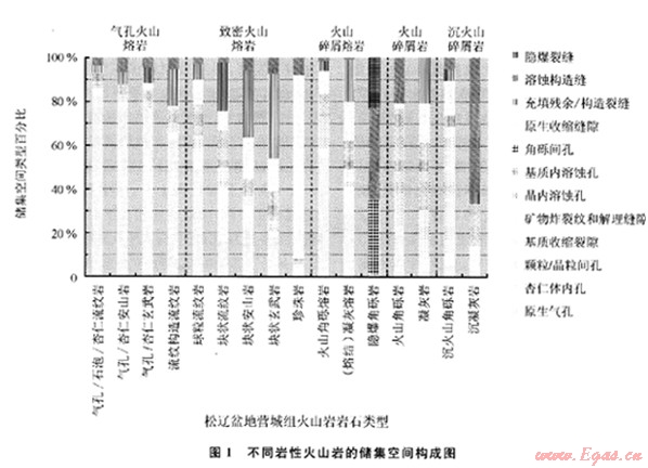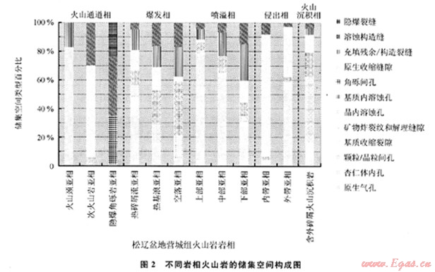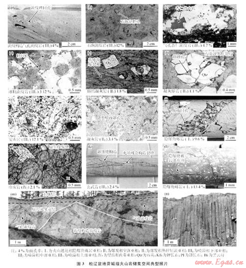 筆者基于前人的研究基礎(chǔ),統(tǒng)計了松遼盆地營城組火山巖中不同孔縫的面孔率,得出了16種巖性12種亞相的主要儲集空間類型,討論了原??紫逗痛紊紫兜某梢?,對火山巖氣藏的勘探開發(fā)有一定的幫助。