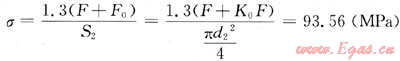 參考《機(jī)械設(shè)計(jì)基礎(chǔ)》[9],當(dāng)螺栓受到殘余鎖緊力和管線氣體壓力的共同作用后的每根螺栓螺紋小徑截面上的應(yīng)力為: