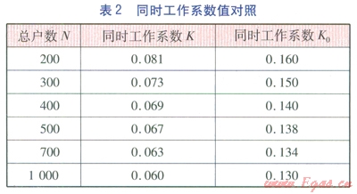 將計算結(jié)果與GB 50028—2006((城鎮(zhèn)燃氣設(shè)計規(guī)范》附錄F中推薦的同時工作系數(shù)值(設(shè)為K0)進行對照,見表2。
