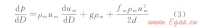 式中P為井筒中任意點(diǎn)的壓力,MPa;D為井深,m;rm為氣液混合物的密度,kg/m3;um為氣液混合物的流速,m/s;g為重力加速度,m/s2;fm為兩相摩阻系數(shù);d為油管內(nèi)徑,m;qt為地面產(chǎn)液量,m3/d;Mt為地面標(biāo)況下,每生產(chǎn)1m3液體伴生油、氣、水的總質(zhì)量,kg/m3;H1為持液率;r1為液體密度,kg/m3;go、gg、gw分別為油、氣、水的相對(duì)密度;Rs為天然氣的溶解氣油比;Bo、Bw分別為油、水的體積系數(shù);WOR為生產(chǎn)水油比;rw、rg分別為水、氣的密度,kf/m3;¦w、¦o分別為所產(chǎn)液體中的含水率、含油率;GLR為氣液比。