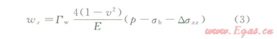 式中z代表x、ywz是垂直于z方向的裂縫縫寬,mm;E為彈性模量,MPa,u為泊松比,無(wú)因次;p為縫內(nèi)流體壓力,MPa;sc代表垂直于z方向的水平主應(yīng)力shsHMPa;Dszz為縫間干擾應(yīng)力,MPa。