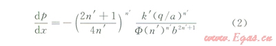 假設(shè)壓裂液在裂縫中的流動(dòng)為層流,遵循冪率流體流動(dòng)規(guī)律,其流動(dòng)方程為: