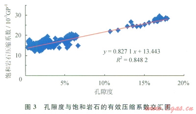 式(7)表明在流體性質(zhì)、地質(zhì)情況等變化不大的情況下,A和/B為常數(shù),即巖石孔隙度與飽含流體巖石的有效壓縮系數(shù)呈線性關(guān)系。