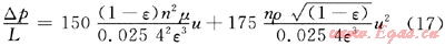 計算顆粒床層阻力采用經(jīng)典Ergun方程: