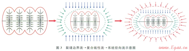 在復(fù)合線性流后,壓力擾動(dòng)會(huì)進(jìn)一步向周?chē)鷥?chǔ)層傳播?;趦?chǔ)層的兒何形狀和邊界條件,可能會(huì)出現(xiàn)以下3種情況:封閉邊界(擬穩(wěn)態(tài))、定壓邊界或無(wú)限大邊界。
