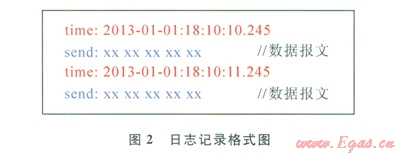 保存日志的命名規(guī)則為日期+鏈路名稱的組合,如“20130101_測試站.log”,日志記錄的格式如圖2所示。