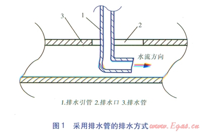 在原來設(shè)計需開挖排水溝的位置,敷設(shè)排水管代替排水溝。在對應(yīng)排水點位置的排水管上開設(shè)排水口,用排水引管將排水引入排水口(見圖l)。排水口應(yīng)大小合適,不能太小,以便觀測排水引管排出水的流量、顏色。排水引管末端應(yīng)采用彎管形式(見圖l),以便引導(dǎo)帶壓熱水按指定方向排放,避免熱水濺出燙人。這種改進措施不僅施工方便,還杜絕了排水溝向電纜溝的滲流現(xiàn)象,更杜絕了敞開式排水溝引起的站內(nèi)空氣相對濕度過大問題。