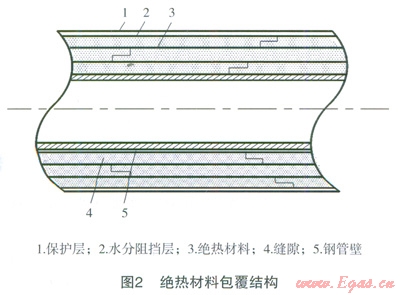 LNG槽車到站后,通常通過低溫泵法或增壓器法對槽車內(nèi)LNG增壓后將LNG卸入儲罐內(nèi)。不論采用哪種方法,LNG必須通過低溫管道進行輸送,在輸送過程中,LNG將吸收外界環(huán)境熱量而氣化,產(chǎn)生BOG。為了減少BOG的產(chǎn)生,通常利用兩種方法對低溫管道進行保冷處理,即絕熱材料包覆法和真空管法,這兩種方法結(jié)構(gòu)如圖2、3所示[5]。