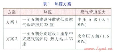 分散式燃?xì)忮仩t房的建設(shè)可隨熱負(fù)荷的增長(zhǎng)逐步實(shí)施,靈活性較大。集中式燃?xì)忮仩t房適合成熟片區(qū)煤改氣項(xiàng)目或整體片區(qū)招商已接近飽和的區(qū)域。而對(duì)于二號(hào)臺(tái)地,由于區(qū)內(nèi)各地塊開(kāi)發(fā)程度不一,尤其是三至五期地塊,若全部采用集中式燃?xì)忮仩t房存在供熱負(fù)荷不飽和、投資效益差的問(wèn)題。