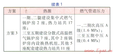 一般而言,熱源方案的確定是以“保障供熱安全,技術(shù)工藝合理,工程投資經(jīng)濟(jì),環(huán)保效益突出”為原則,從區(qū)域總體規(guī)劃及大氣污染治理的總體要求出發(fā),從技術(shù)、經(jīng)濟(jì)、工程實(shí)施可行性等多角度進(jìn)行比選。針對(duì)本工程的區(qū)域特點(diǎn),在常規(guī)的比選條件的基礎(chǔ)上,結(jié)合總體規(guī)劃的分期開(kāi)發(fā)要求,提出了3種熱源方案進(jìn)行比選(見(jiàn)表l),3種方案均采用分期建設(shè)方式。