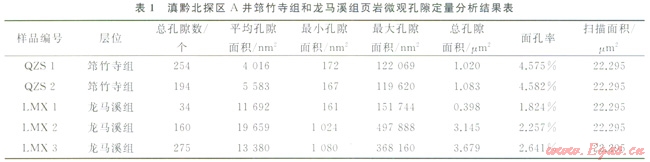 富有機(jī)質(zhì)泥頁(yè)巖既可作為烴源巖,又可作為油氣儲(chǔ)集層[6,8,10]。泥頁(yè)巖“千瘡百孔”的內(nèi)部微結(jié)構(gòu)中存在著大量不同類型的微觀孔隙,微孔的形狀、大小、連通性等不同狀況對(duì)油氣聚集有著重要的控制作用[23]。