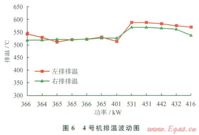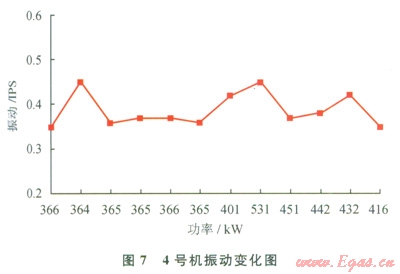 10口井的試驗中,GTI混合燃料技術(shù)基本能滿足各個工況下鉆機(jī)對柴油機(jī)動力的需求,對突加負(fù)荷的滿足能力較強(qiáng),當(dāng)運(yùn)行參數(shù)超過設(shè)定的安全值,能立即平穩(wěn)地轉(zhuǎn)為純柴油模式,保證動力供給的連續(xù)性。起下鉆工況下,4號柴油機(jī)最低排溫511℃,最高排溫576℃,均在安全范圍內(nèi)。其排溫曲線和振動變化如圖6、7所示。