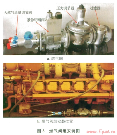 由天然氣流量調(diào)節(jié)閥、緊急切斷閥、壓力凋肯器和過濾器組成(3)。過濾器用于濾除天然氣中的污染物以保護(hù)系統(tǒng)和柴油機(jī);壓力調(diào)節(jié)器可以監(jiān)測柴油機(jī)負(fù)載增減引起的柴油機(jī)真空度變化,從而保持設(shè)定的天然氣進(jìn)氣壓力。緊急切斷閥內(nèi)部包含2個相互獨立的“常閉”狀態(tài)的閥門。天然氣流量調(diào)節(jié)閥用于控制給定負(fù)載時的天然氣流量,可用于設(shè)定天然氣/柴油替代率。