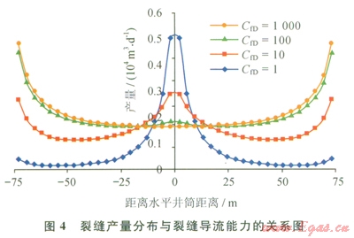 4.4 裂縫產(chǎn)量分布與裂縫導(dǎo)流能力的關(guān)系
