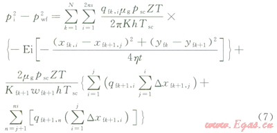 如果井底壓力(pwf)已知,聯(lián)立方程式(5)、(8)便可求得每個線匯的產(chǎn)量,根據(jù)式(9)就可求得總產(chǎn)量。