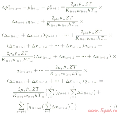 當(dāng)儲層流體為氣時,根據(jù)壓力函數(shù)的定義和真實氣體狀態(tài)方程,并將地下產(chǎn)量轉(zhuǎn)換成地面標(biāo)準(zhǔn)情況下的氣體產(chǎn)量[4,10],式(3)可寫為: