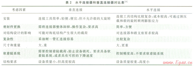 水下連接器系統(tǒng)可分為水平連接器和垂直連接器,具體比較如表2所示。