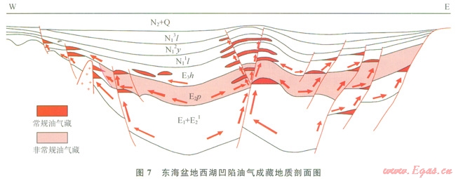 東海盆地位于東海陸架區(qū),基底是燕山期陸緣花崗巖帶,新生代歷經(jīng)裂陷期、坳陷期及新構(gòu)造期3大構(gòu)造階段。其中裂陷期為古新世—始新世,坳陷期為漸新世—中新世,上新世—第四紀(jì)為新構(gòu)造期。東海盆地以新生代沉積地層為主,從古新統(tǒng)至第四系均有發(fā)育。該盆地經(jīng)歷了5次主要構(gòu)造改造作用,特別顯著的是發(fā)生過多期正反轉(zhuǎn)(6、7)。東海貧地呈二坳二隆構(gòu)造格局。西部坳陷帶(長江坳陷、臺北坳陷)、中央隆起帶(虎皮礁隆起、海礁隆起、漁山東隆起)、東部坳陷帶(福江凹陷、西湖凹陷、釣北凹陷)和東部隆起帶(釣魚島隆褶帶,即陸架外緣隆起)。東海盆地形成于太平洋板塊俯沖導(dǎo)致的弧后擴(kuò)張作用;隨著俯沖帶的不斷東撤,盆地內(nèi)部呈由西向東逐漸變新的構(gòu)造遷移特征,沉積—沉降中心逐漸東移,形成了凹陷之間構(gòu)造—沉積演化的差異。古新世裂陷主要發(fā)生在東海盆地的西部坳陷帶,始新世—漸新世裂陷主要發(fā)生在其東部坳陷帶。