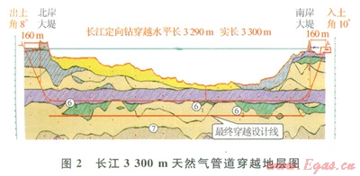 江都一如東天然氣管道項(xiàng)目3期工程泰興  芙蓉段管道在靖江與江陰之間穿越長(zhǎng)江,有2Æ7llmm天然氣管道,同時(shí)并行Æ406.4mm成品油管道,每根管道長(zhǎng)度均為3300m(1)。